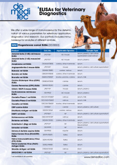 A comprehensive range of veterinary immunoassays designed for multiple animal species, including unique, species-specific test kits widely used in research and pharmaceutical studies. The portfolio also supports steroid analysis across species, with flexible sample options such as extracted samples or saliva for simplified and accurate testing.